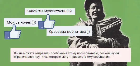 «Одного моего одноклассника жутко нервирует, когда его мать отмечает его в постах. Знаете, особенно когда это такое милое смешное видео, которое необязательно показывать всем, кто добавил его в друзья и видит посты с его страницы».Федор Кваша, ученик 8 класса, 14 лет