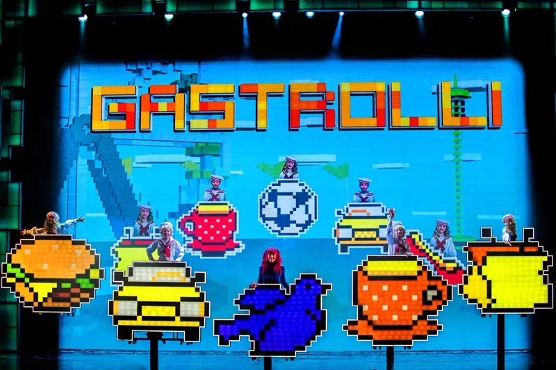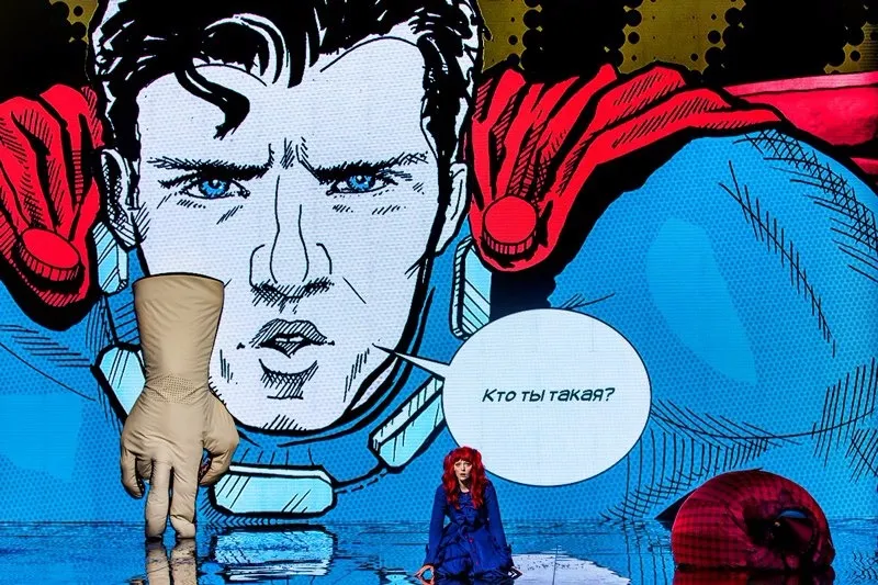 Помогают пребывать в обаятельно-жутковатой атмосфере сюра и фэнтези многочисленные сцены с туманом и полумраком, “пиксельные” декорации, оригинальные решения (Страж, например — это супергерой из комикса, который говорит с Матильдой с большого экрана, в то время как его рука — отдельный смешной персонаж на сцене), свет, очень классные, нереально фактурные костюмы (мороженное я бы съела!) и музыка — её писала для мюзикла полуфиналистка проекта Голос, солистка группы The Slot, Дария Ставрович, и её современное и небанальное звучание мои девчонки заценили.