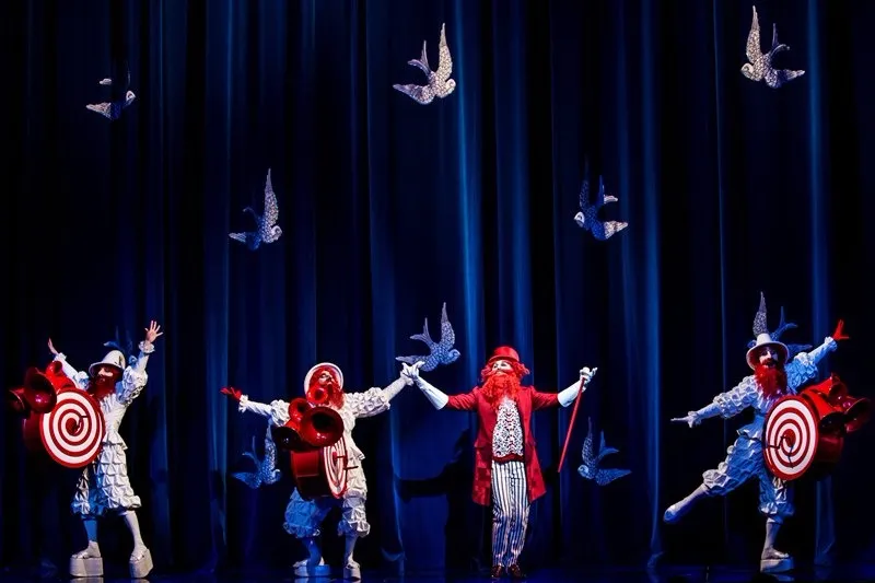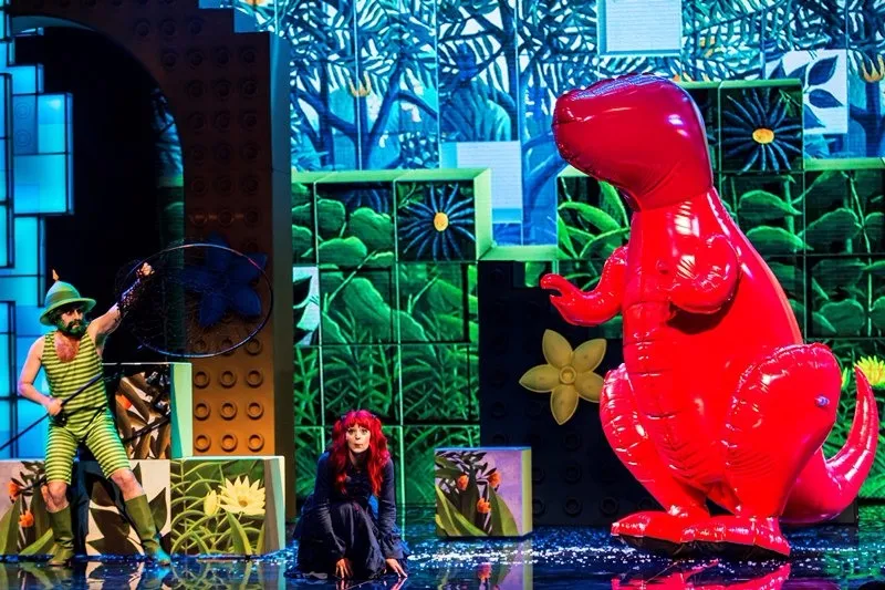 Законам сна, а не театра и логики подчиняются и некоторые сцены и персонажи: огромный красный дракон, появляющийся в конце первого акта — это просто мелькнувшее в подсознании воспоминание о резиновом дракончике из детской, он совершенно не упоминается в сюжете и, казалось бы, не нужен, как и оркестр заводных обезьянок, но они прибавляют зрелищной абсурдности, веселят маленьких зрителей и в итоге логичны.