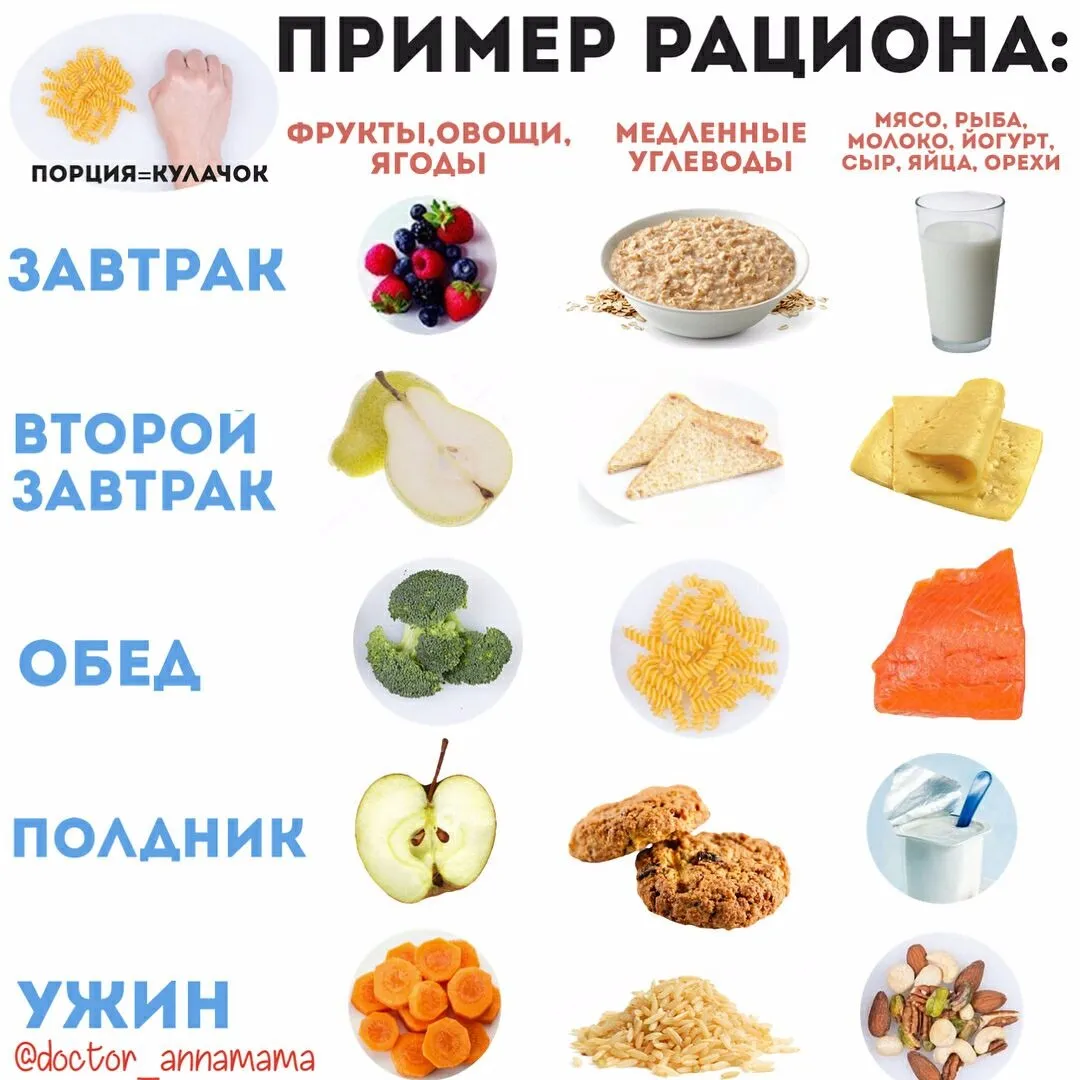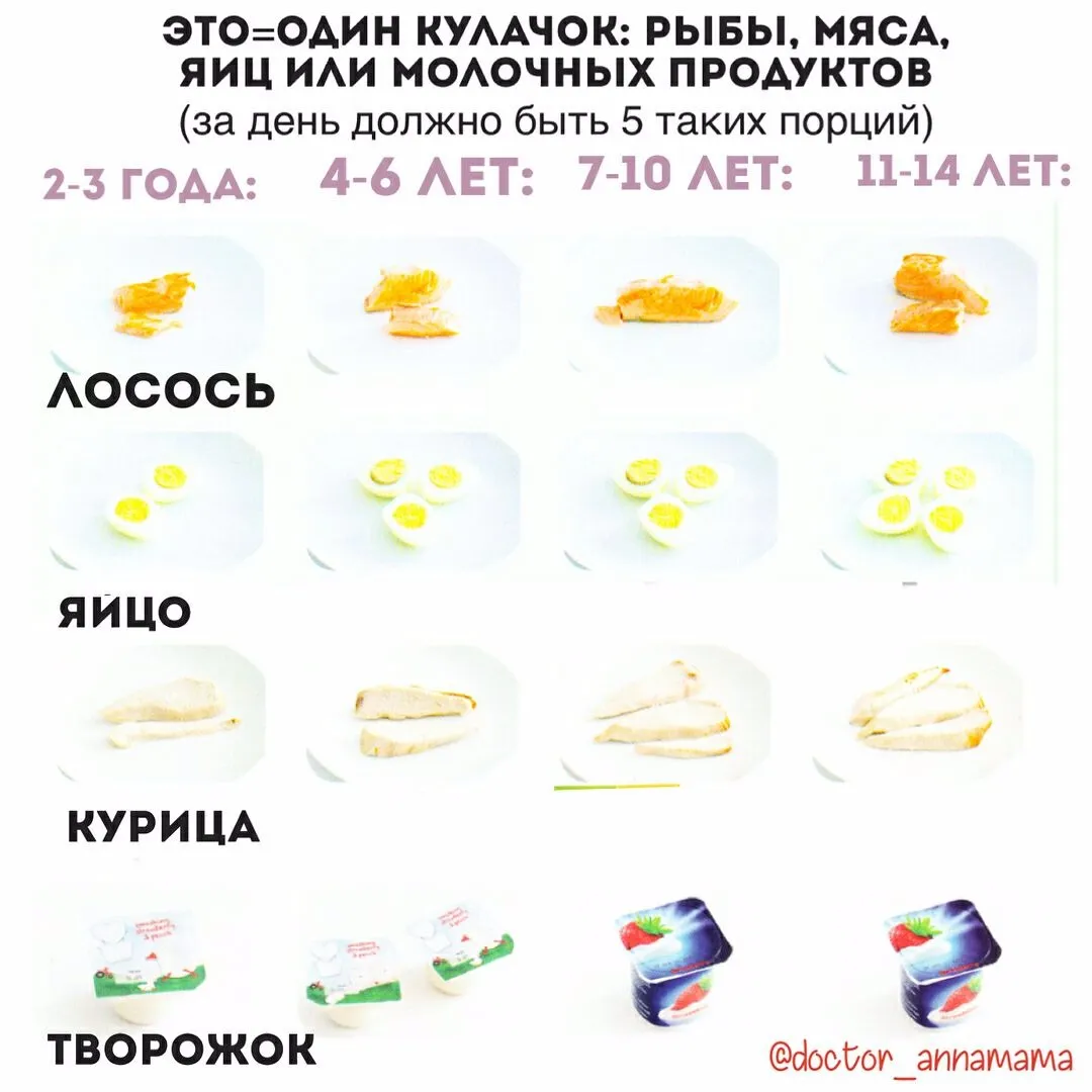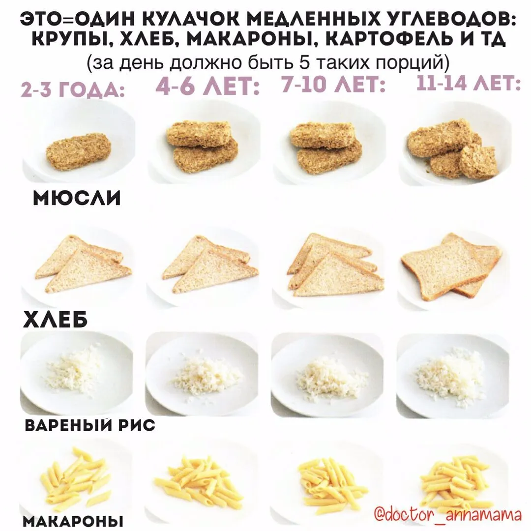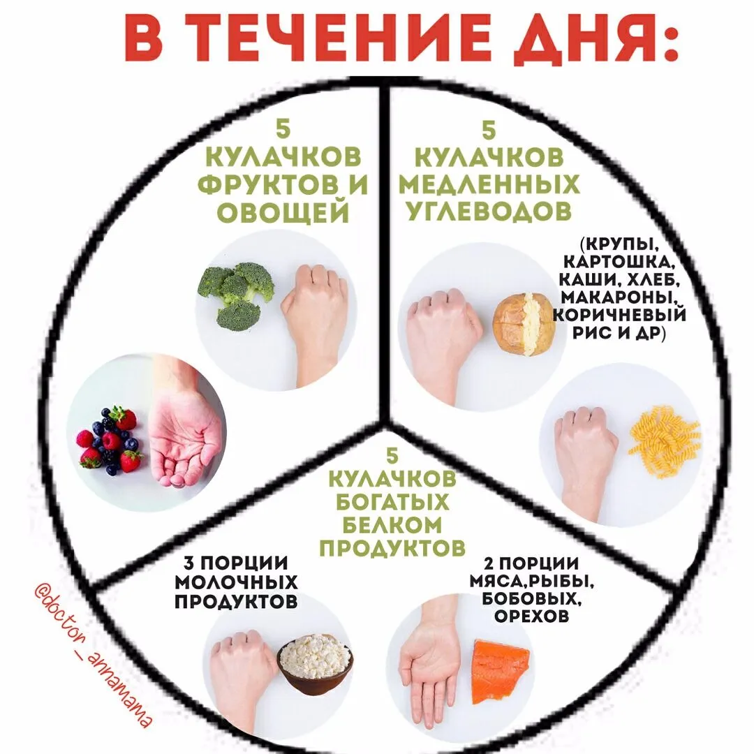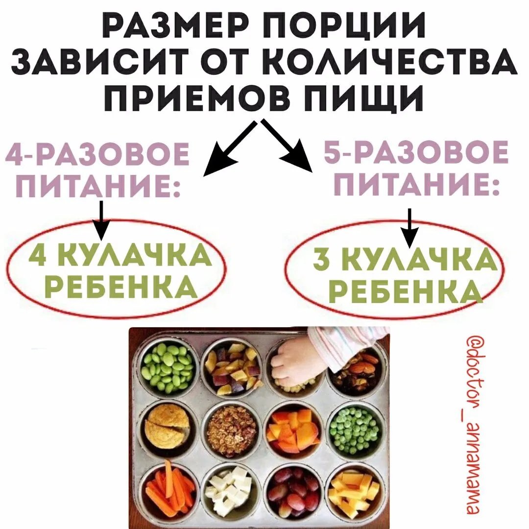 🍱При 5-разовом питании (завтрак-второй завтрак-обед-полдник-ужин) порция примерно ~3 кулачка