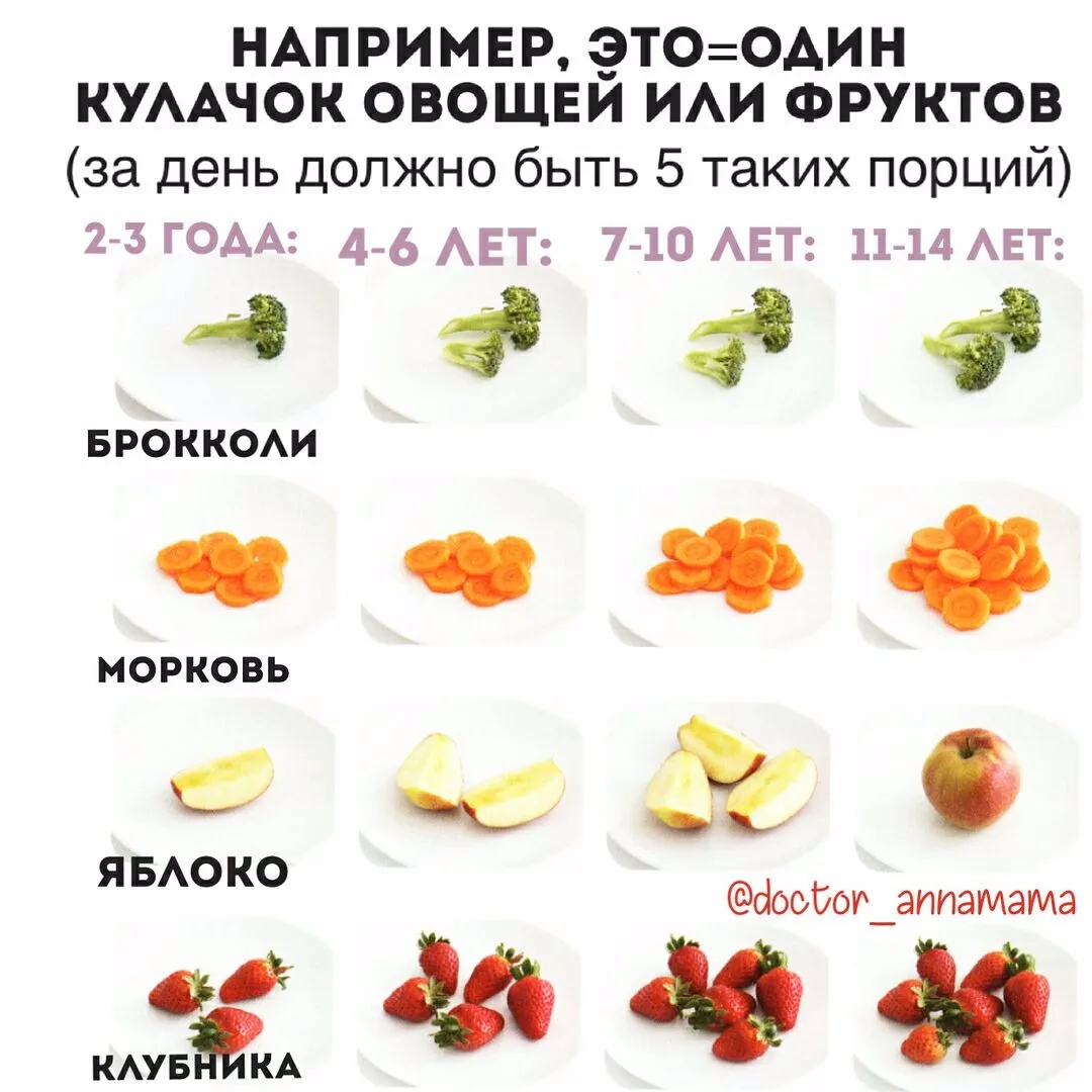 1️⃣~5 кулачков овощей и фруктов 🍏🥕 🥑🍌🍓